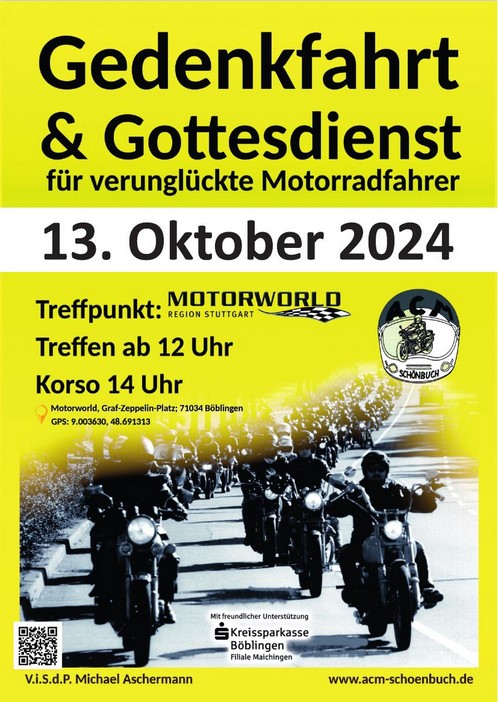 ACM Gedenkfahrt und Gottesdienst für Motorradfahrer. 13. Oktober "Motorworld Böblingen", Hans-Klemm-Platz, Böblingen