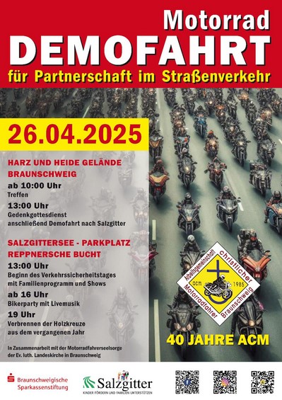 40 Jahre ACM Braunschweig. Wie in jedem Jahr gibt es zum Anfang der Saison eine Demofahrt, die für Partnerschaft im Straßenverkehr wirbt, Biker*innen sichtbar macht und auch jenen gedenkt, die es in der vergangenen Saison tödlich verunfallt sind.